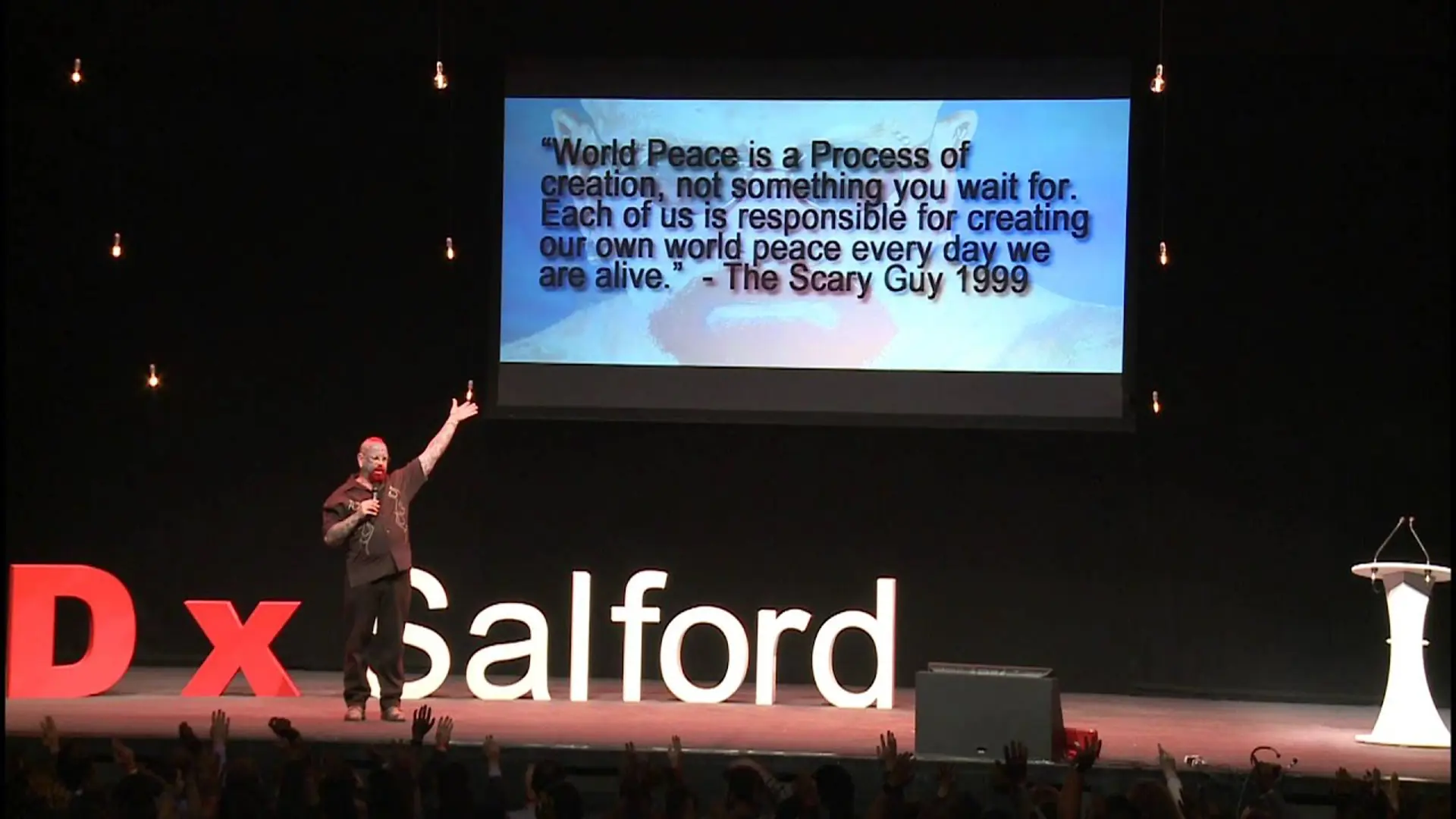 Through his work with organizations and communities around the world, The Scary Guy continues to help people understand how to transform negativity into responsibility, strength, and personal peace.